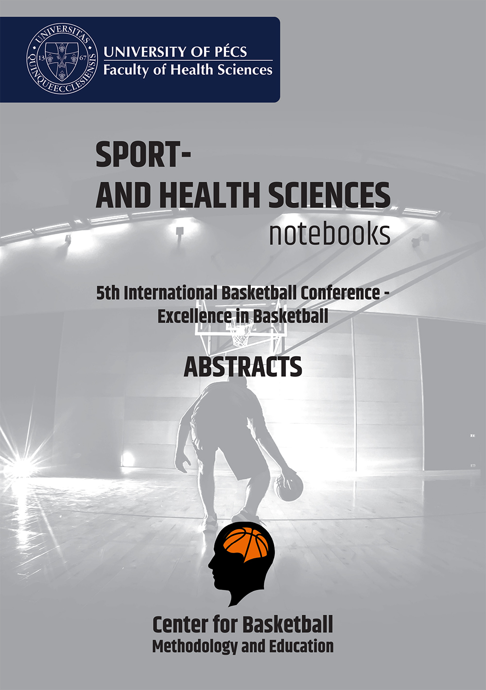 Évf. 8 szám 4 (2024)Pécsi Tudományegyetem, Magyarország A kiadó és a szerkesztők nem vállalnak felelősséget az absztraktokban megfogalmazott állításokért, véleményekért. A Pécsi Tudományegyetem Egészségtudományi Kara és a Kosárlabda Specifikus Módszertani Központ előzetes engedélye nélkül tilos a jelen mű bármilyen ismert, vagy a jövőben ismertté váló formában, vagy elektronikus, mechanikus, vagy más módon történő sokszorosítása, hasznosítása, beleértve a fénymásolást, illetve az adatok tárolására és visszakeresésére alkalmas rendszerbe történő adatrögzítést.